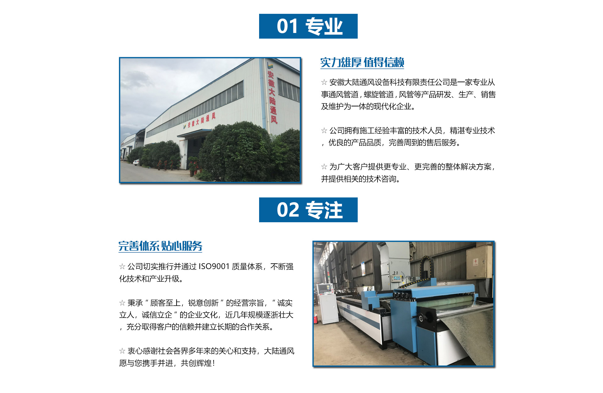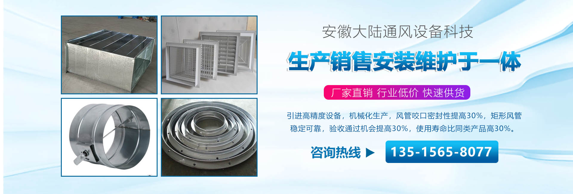 安徽大陸通風(fēng)設(shè)備科技有限責(zé)任公司加工共板法蘭風(fēng)管、螺旋風(fēng)管、角鐵法蘭風(fēng)管、插接式風(fēng)管。價(jià)格合理。質(zhì)量保障。是國(guó)內(nèi)生產(chǎn)和研究通風(fēng)管道的企業(yè),工廠(chǎng)坐落于經(jīng)濟(jì)發(fā)達(dá)的安徽省合肥市。公司配備了好的自動(dòng)化流水線(xiàn)設(shè)備和先進(jìn)的制作安裝技術(shù)。